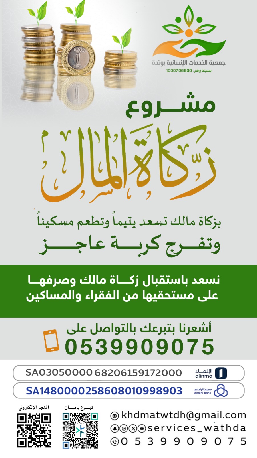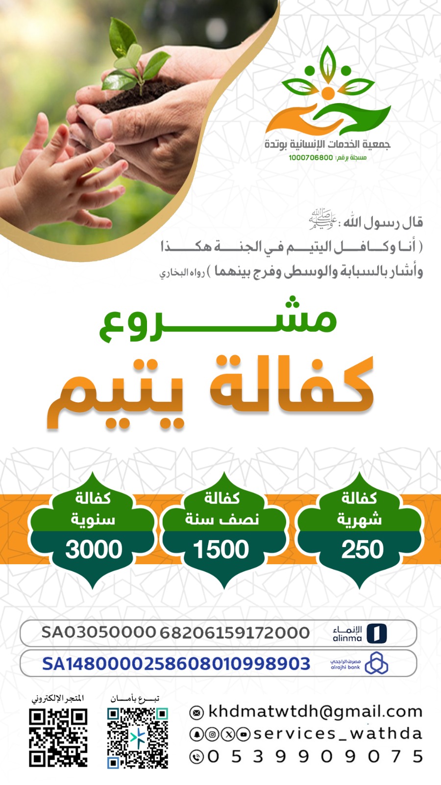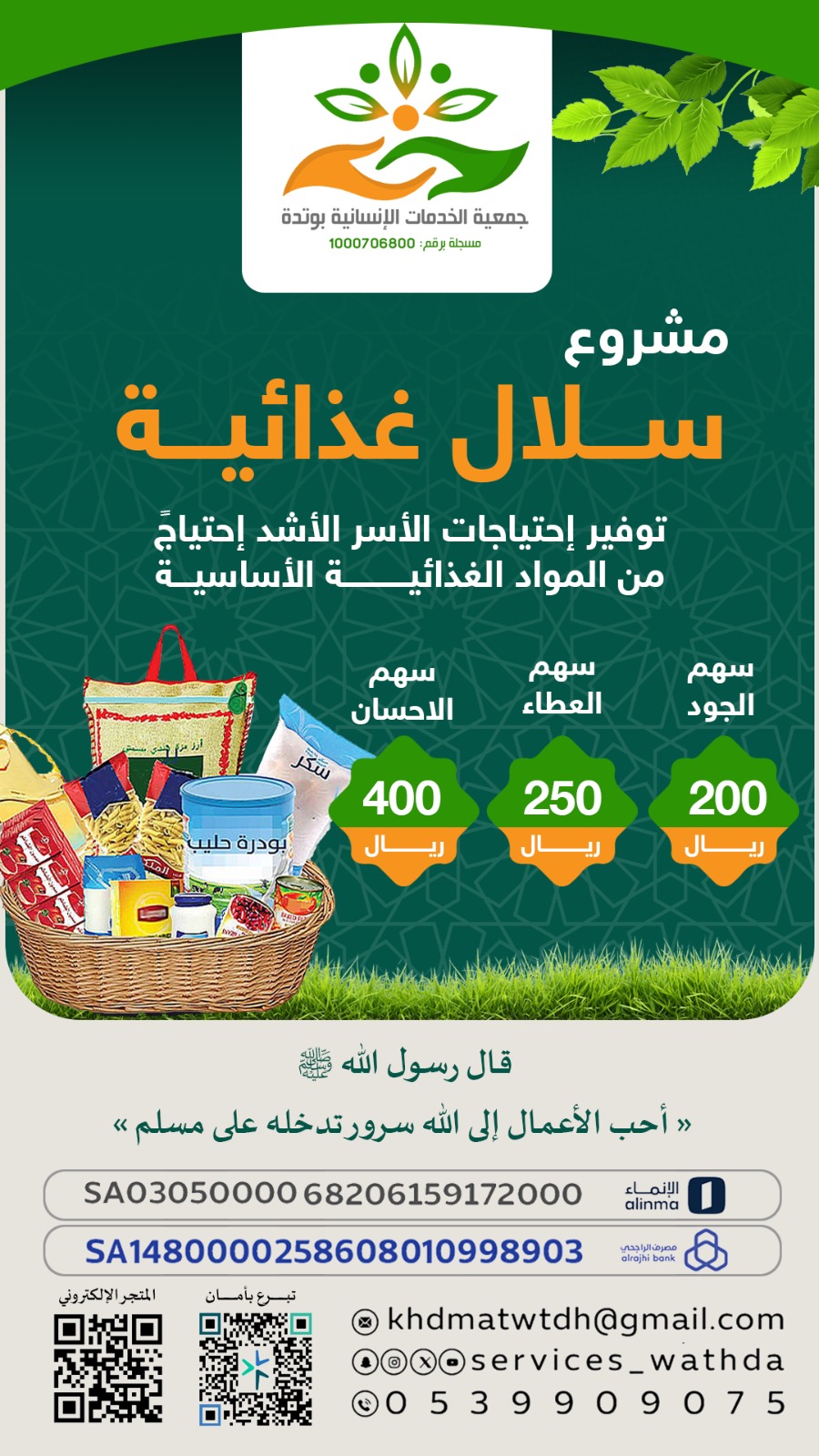 جمعية الخدمات الإنسانية بوتدة، جمعية أهلية غير ربحية تحت إشراف المركز الوطني لتنمية القطاع غير الربحي، مسجلة برقم (1000706800).